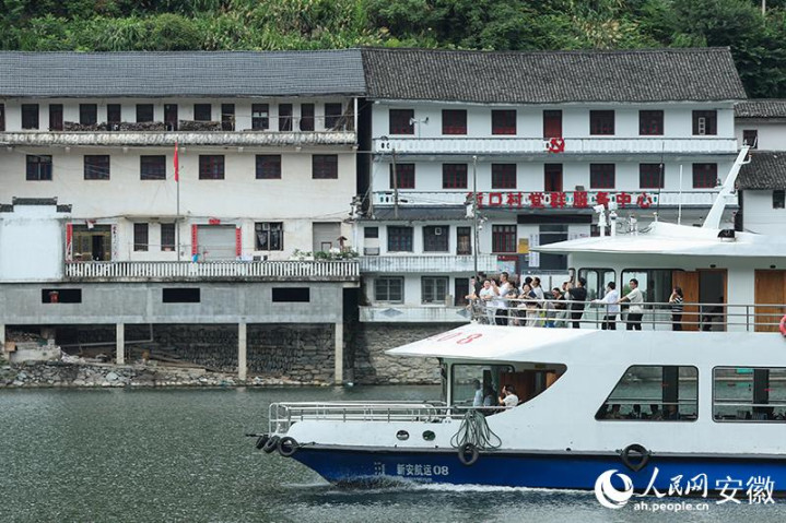游客乘坐游船,感受一江清水出新安。人民网记者张俊摄
