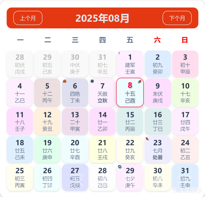 当前节气:立秋 2025-08-07 13:51:19 星期四
