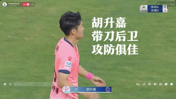 第14分钟,无锡队禁区左侧底线倒三角回传被解围,禁区外的16号胡升嘉获得球权晃过防守球员左脚低射,皮球滚入了远端死角,无锡队打破僵局,客场1-0扬州队。