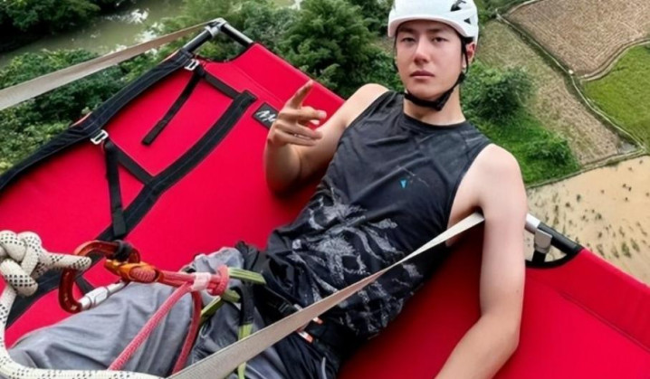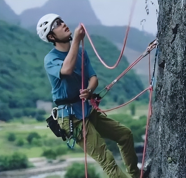 在他拍《探索新境》的时候在攀岩的时候因为下雨岩石变得滑被挂在石岩峭壁上。