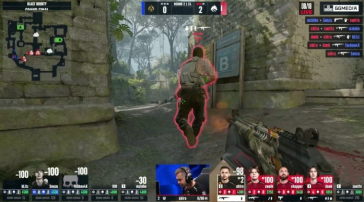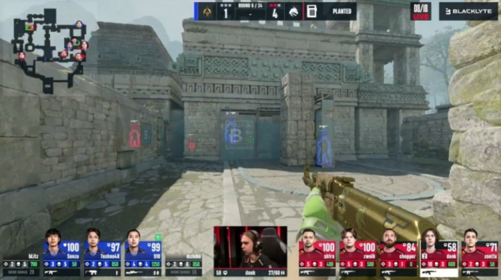 上半场Spirit先攻,手枪局Spirit冲A得手,donk见面双杀,Spirit在A下包,910残局1v4想要拆包被donk击杀,donk单局三杀,蒙古0-1Spirit。