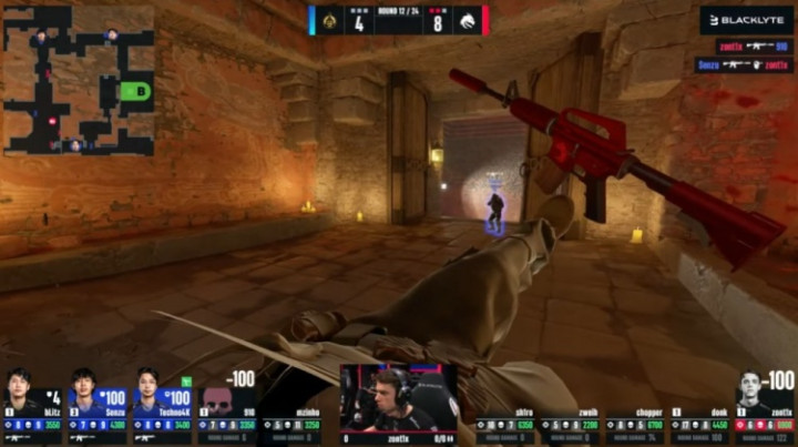 第12局蒙古继续中路反清,donk匪口先换mzinho,Senzu在B长廊击杀zweih后再杀sh1ro,中路Senzu再杀zont1x,蒙古4-8Spirit。