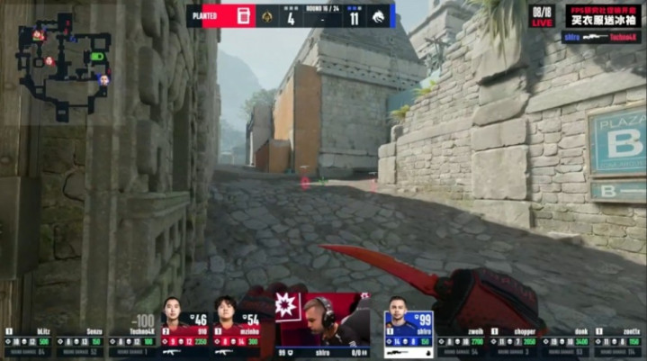 第16局中路混战双方2换2,910架住VIP击杀zweih后在A下包,sh1ro残局1v3击杀4k后在B保枪,C4爆炸,蒙古5-11Spirit。