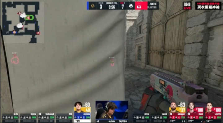 第7局回到长枪,Spirit冲B点,bLitz与4k前顶B点联手击杀chopper与zweih,Spirit三人带包去A,mzinho背身双杀,蒙古2-5Spirit。