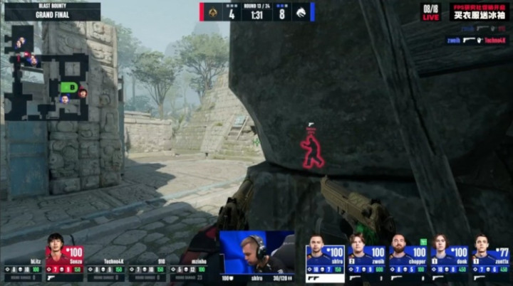 第8局蒙古继续双人中路前顶,甜甜圈mzinho被donk击杀,910中路大狙击杀zweih,bLitz来A双撒和,sh1ro在A下包后击杀bLtiz,残局chopper一打二,chopper甜甜圈混掉910,4k连续两次假拆骗出chopper后将其击杀,4k惊险拆包拿分,蒙古3-5Spirit。