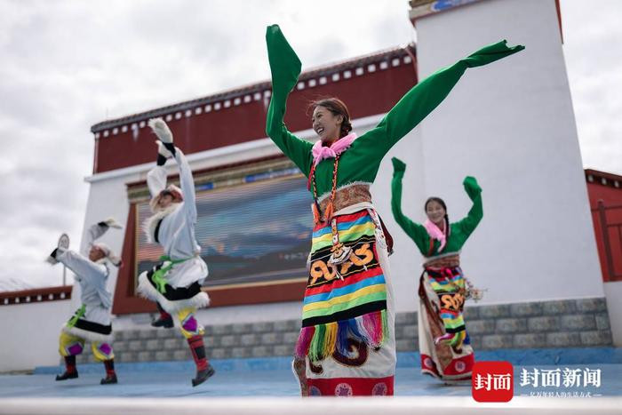 西藏山南市浪卡子县,当地居民在给游客展示传统舞蹈。