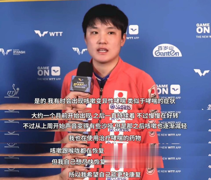 单双打全部出局后,张本智和面对日本媒体透露了一个情况,他声称:“我有时候会变异性哮喘,类似于哮喘的症状,大约在一个月前就开始出现了,之后一直持续着,不过正在慢慢好转,从上周开始声音就变得沙哑,但是之后咳嗽在逐步减轻,我也正在使用治疗哮喘的药物,咳嗽和喉咙都在恢复,所以大家不必担心!我会想尽办法尽快恢复,发出洪亮的声音。”