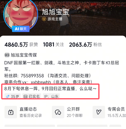 尤其是现在旭旭宝宝已经是宣布停播了,宝哥在8月下旬直接停播休息,等到9月份才会回归。而这停播的原因除了宝哥自身原因,宝哥直播真的累到了之外还和直播环境有关系的。宝哥之前也是透露过自己都不太能接到商单了,直播也是没有报销的。这直播收入的减少还不如停播休息呢,而且除了宝哥之外其他的很多大主播也都是停播了。
