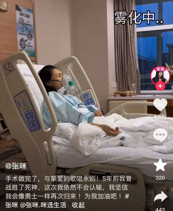 8月26日,张咪在社交平台上发布了回归舞台的视频,这是她舌癌手术后第一次唱歌 ,“那些无法说话的日夜,是音乐和挚友紧握的手,把我从寂静深渊一寸寸拉回有光的地方。若你正孤独跋涉,请记住:世界上总有人愿为你点亮舞台,等你哼出第一个音。”