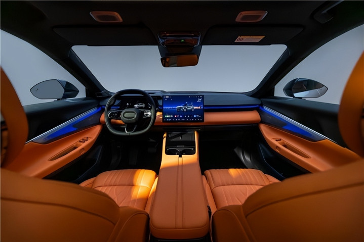 内饰打造贴合家庭场景,配色、材质、工艺都透着“舒服”。曙光橙和日光米两种内饰色,避开传统车型沉闷——曙光橙如黎明阳光般温暖,坐感温馨;日光米清新明亮,让车内空间更开阔,孩子后排玩耍也不压抑。材质选用加了Ansole抗污技术配方的抗污Nappa皮,抗污性能与真皮座椅生命周期一致,孩子洒饮料用湿布一擦即净。细节处顶级绗缝工艺堪比奢品级刺绣,既显精致,触摸又有细腻质感。256色流光环绕氛围灯可随场景切换,晚上带娃出门调柔和颜色,车内氛围更温馨。