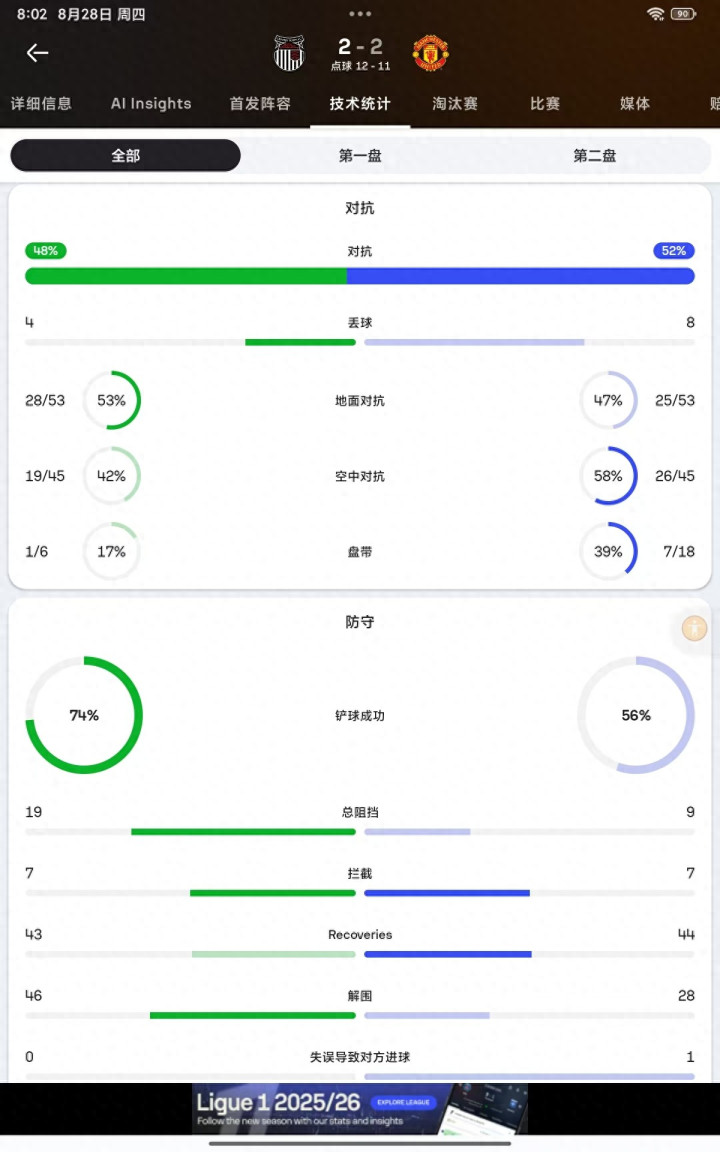反正,我是看到开赛前26分钟,英乙球队用伐木战术,放倒了达洛特、放倒了梅努、放倒了库尼亚,然后曼联球员倒地的频次就开始降低了,因为他们开始躲,对手滑铲、你跳起来,把球权让给对方,当你开始怂的时候,你的气势就弱了,对手的气势就强了。