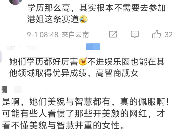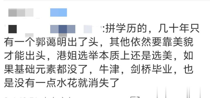 只是历届港姐除了郭谒明全都是靠颜值取胜,在娱乐圈,除非学历和谈吐好到破圈,不然没有美貌无人关注。