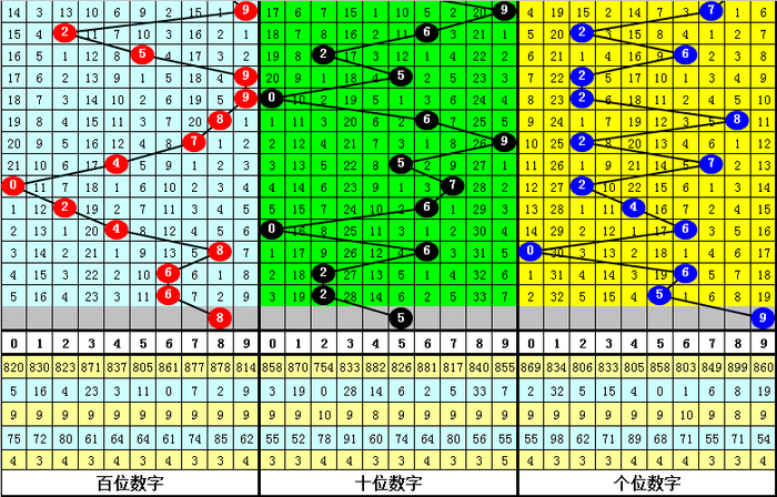 其中,组三出现7次,组六出现16次,单选0-9分别开出: