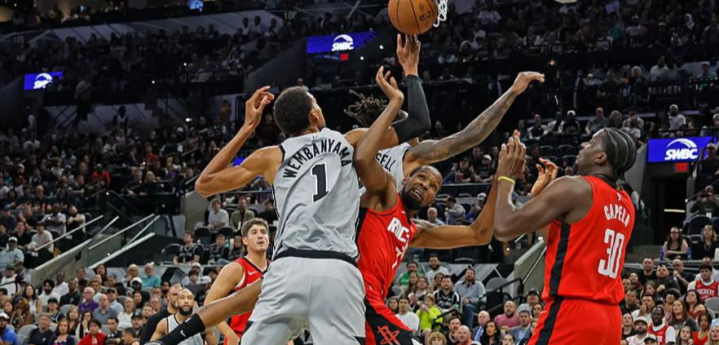 双方首发阵容,火箭队范弗里特继续缺阵,排出了杜兰特、申京、小史密斯、阿门汤普森、奥科吉的阵容;马刺队福克斯继续缺席,排出了文班亚马、巴恩斯、瓦塞尔、卡斯尔、尚帕涅的组合!