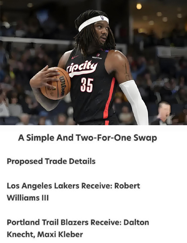 也正是基于此,美媒《Fadeaway World》建议湖人、开拓者进行一笔交易。具体为湖人送出克内克特、克勒贝尔得到罗伯特·威廉姆斯。