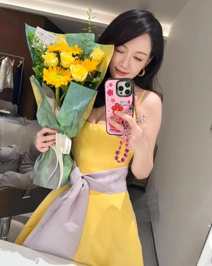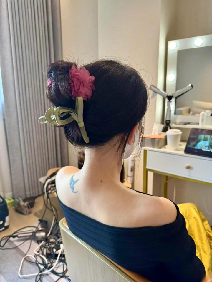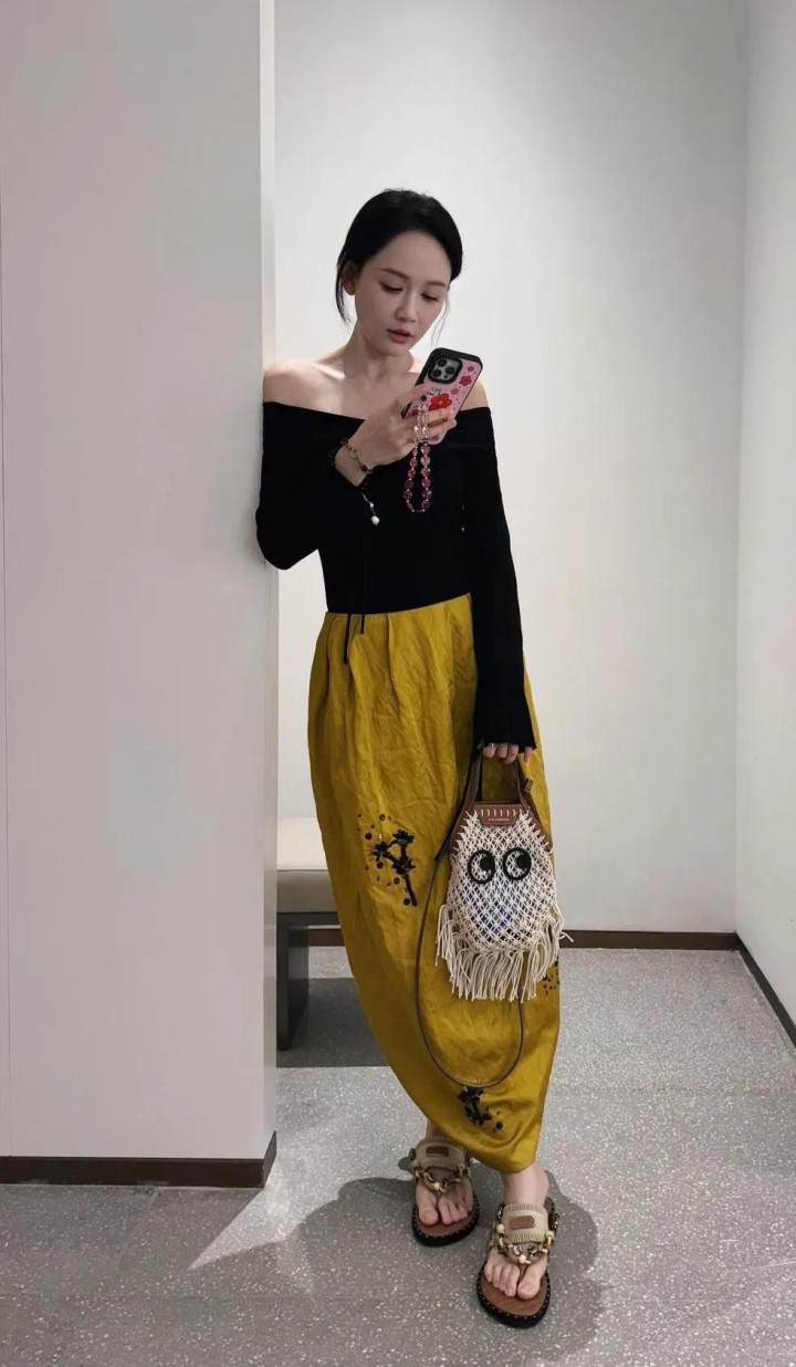 46岁陈乔恩凌晨晒照, 身穿抹胸紧身T恤, 露出肩膀上的纹身