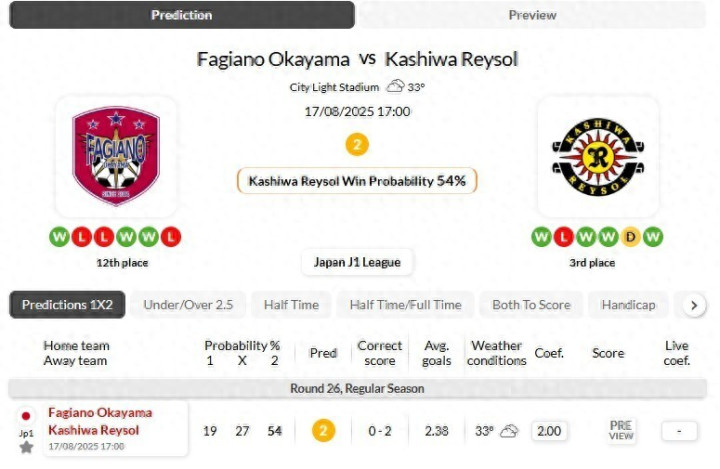 Fagiano Okayama have scored an average of 0.92 goals in their games in J1 League