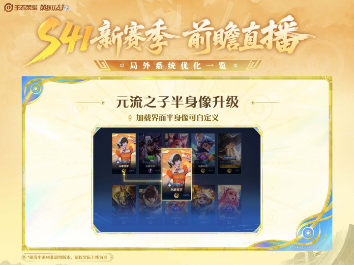 再就是元流之子,这个英雄也有的半身像也会升级,在加载界面的半身像玩家可以自定义了,对于喜欢元流之子这个英雄的玩家来说,也是一个好消息。