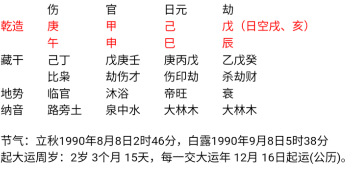 2020庚子年,子午冲,偏财出现,财星混杂,大运亥冲巳,流年子冲午,印星尽遭损,婚姻摇摇欲坠。