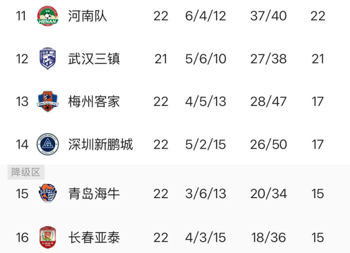另一个影响是,21分的武汉队、22分的河南队也变得有些危险了!得争取尽快拿分,保级上岸!一旦有个1-2轮不胜,积分优势有可能损失殆尽。