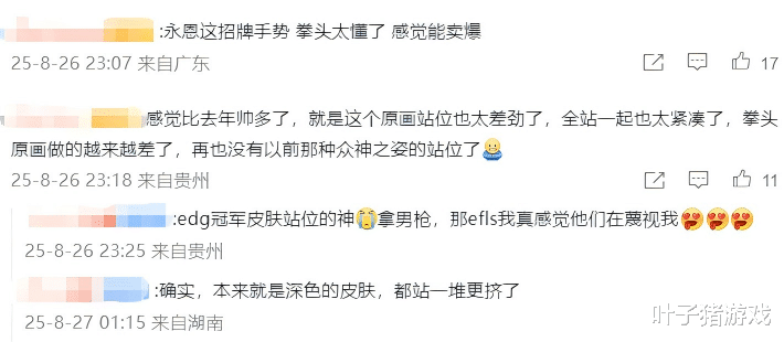 只是网友觉得冠军五人组原画的站位有点紧凑,不够有大魔王君临天下的范儿:“感觉比去年帅多了,就是这个原画站位也太差劲了,全站一起也太紧凑了”,“永恩这招牌手势 拳头太懂了 感觉能卖爆”,“小时候看这集吓哭了”……