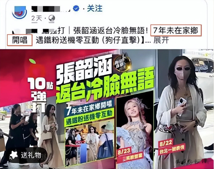 起因是2025年8月28日,张韶涵在返回台湾时被狗仔队跟拍,媒体报道中形容她“全程黑脸”、“铁粉送机0互动”,引发了争议。