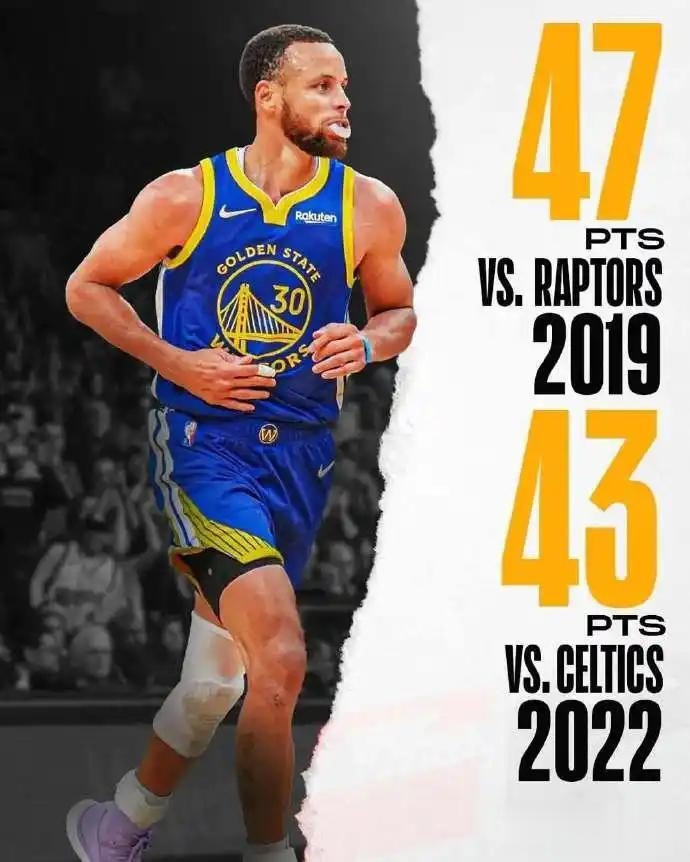 库里在2019年和2022年总决赛分别得到过47分和43分。
