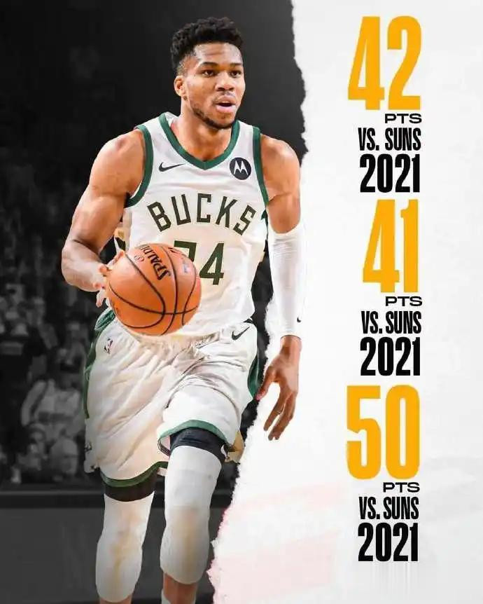 字母哥就打了1次总决赛,六场比赛砍下3次40+,其中包括1次50分!