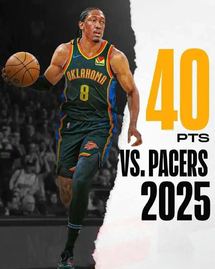 在6月份结束的NBA总决赛中,杰伦-威廉姆斯成为了雷霆队史第二位总决赛单场砍下40+的球员,第一位是2012年的威少。
