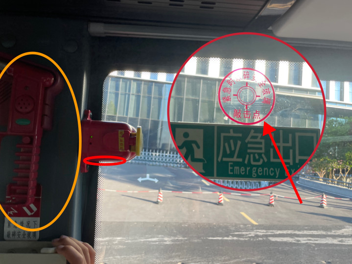 看到车窗边的安全锤,好奇地看着问着,美酒记住了关键时候用它敲哪个画着圆圈的玻璃点。