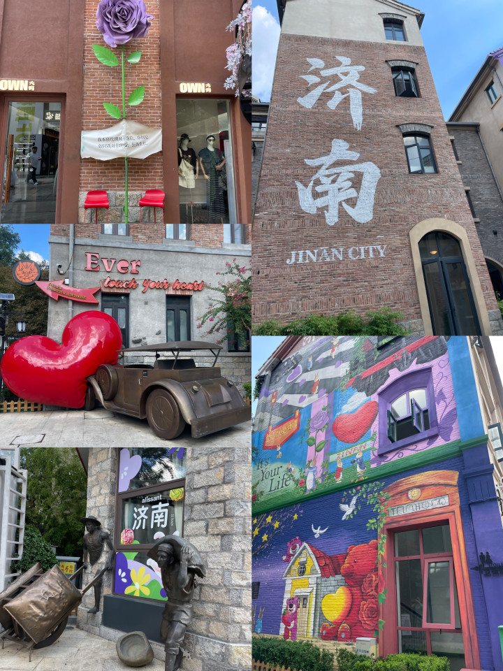 大大的“济南”俩字、漂亮的心形装饰、梦幻的整墙壁画、神秘的一支玫瑰、有意思的雕塑……诸多打卡点,吸引游人驻足拍照。