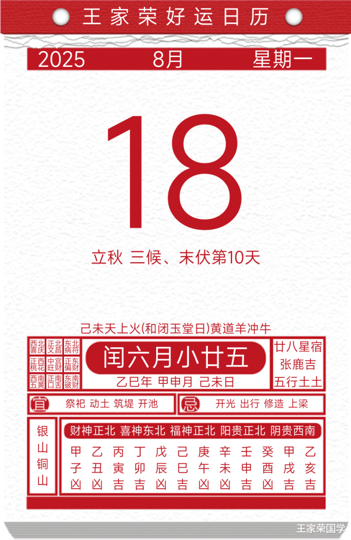 农历日期:二零二五 乙巳蛇年 闰六月小廿五
