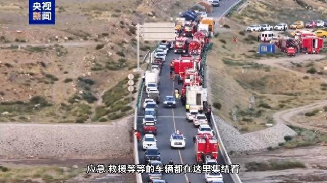 事发区域周边,应急救援车辆集结。图据央视新闻