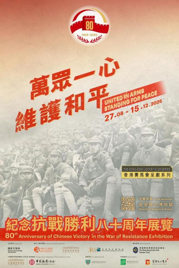 即将在香港举办的“万众一心维护和平——纪念抗战胜利八十周年展览”,旨在面向香港市民和赴港游客,引导大家铭记历史,珍爱和平,弘扬伟大抗战精神。该展览由国家文物局指导,香港康乐及文化事务署、中国国家博物馆联合主办,香港历史博物馆、中国国家博物馆联合筹划,在中国国家博物馆战略合作伙伴中国银行的支持下,预计8月27日至12月15日在香港历史博物馆展出。