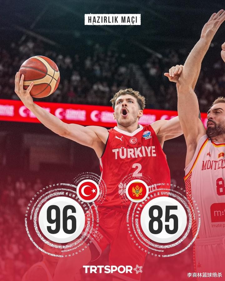 贡献26分11篮板3助攻4抢断1盖帽,申京率领土耳其男篮在最后一场热身赛以96比85击败黑山男篮。土耳其男篮打了5场热身赛,取得3胜2负的战绩,其中最后3场比赛都获得胜利。三连胜也让土耳其男篮将士更有信心了。