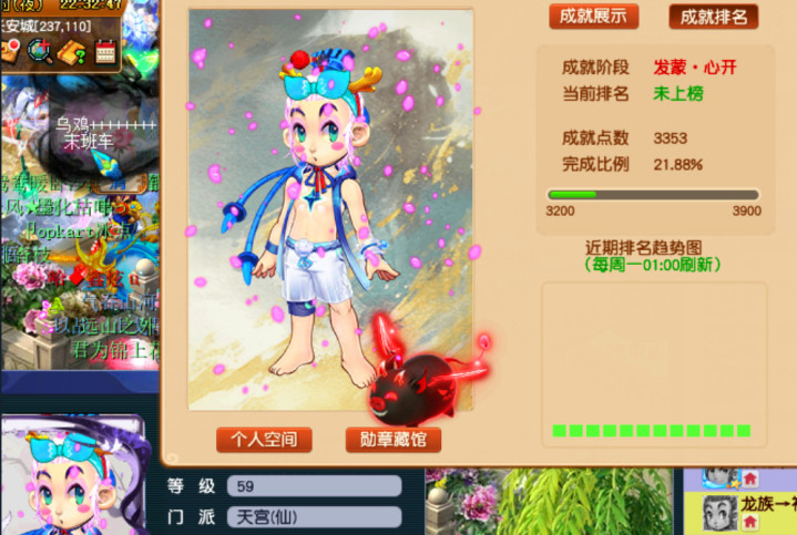 在梦幻西游中有一部分玩家比较喜欢刷成就,上面就是一个59级的角色,但是这个59级的角色现在却拥有了3353年的成就,59级能够刷的任务比较少,所以在3353点的成就大概率是这位玩家花钱找别人给代刷的。也就是找高等级的角色带着刷任务。这3353点成就的获得成本比较高。但是小编感觉这样做没有任何的意义。相当于是把好钢用在了刀把上。