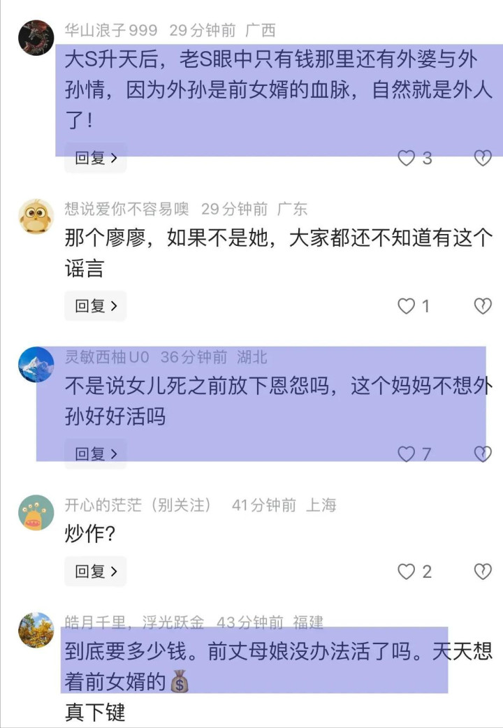不少网友表示,不管真相如何,大S已经离开了,频频借她名字炒作、打官司、互撕,只会让人心生厌恶。