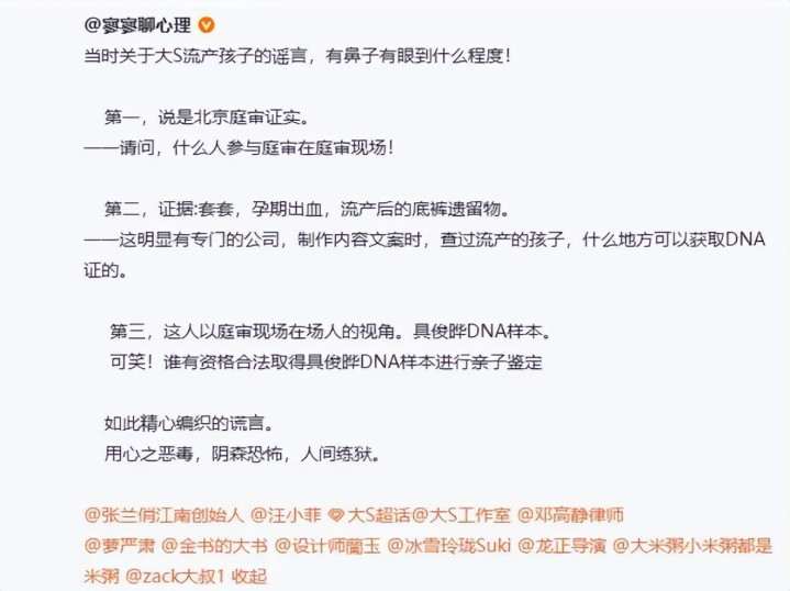 这则消息说得有鼻子有眼:流产、胎盘、DNA、婚内出轨……仿佛每一个词都来自专业实验室,配图还加了笑脸表情,活像在对逝者进行最后一击。
