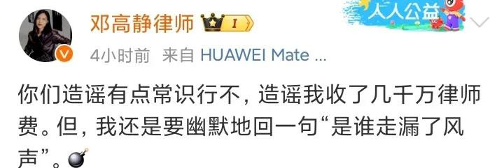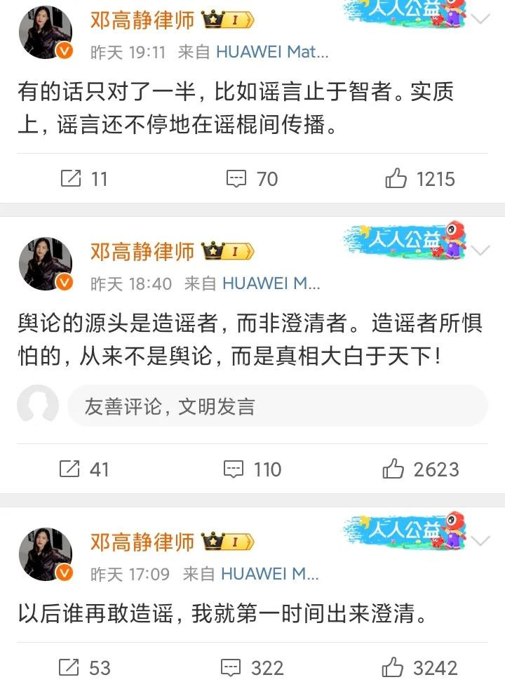 这一次,徐家怒了,邓律师发布多条动态,绝不姑息造谣者。