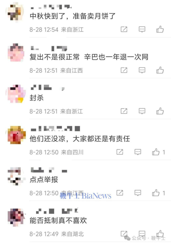 还有网友称:“复出不是很正常,辛巴也一年退一次网。”