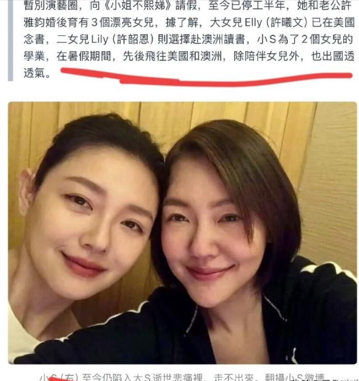 传闻中,小S早知道女儿有男友,还一边安排她画展开幕,一边送她出国读书——安排得明明白白。