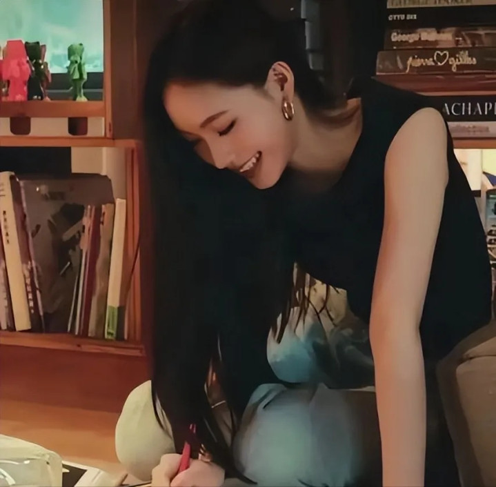 但她的眼神藏不住。照片里的她,眼角上扬,嘴角含笑,那种刚刚坠入爱河的甜蜜,全写在脸上了。不是那种刻意演出来的“营业感”,而是一种藏都藏不住的少女心事。
