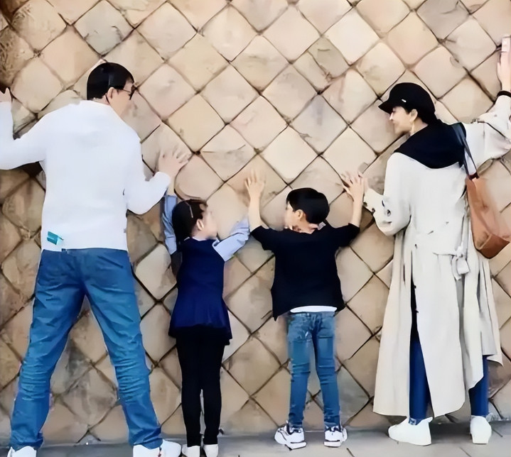 一家人甜蜜幸福,一双儿女可爱乖巧。