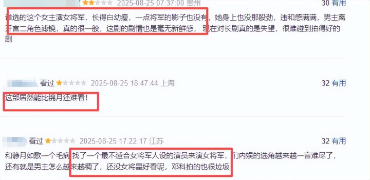 哪有女将军是小鸟依人、撒娇卖萌的,而周也的演技也很呆。
