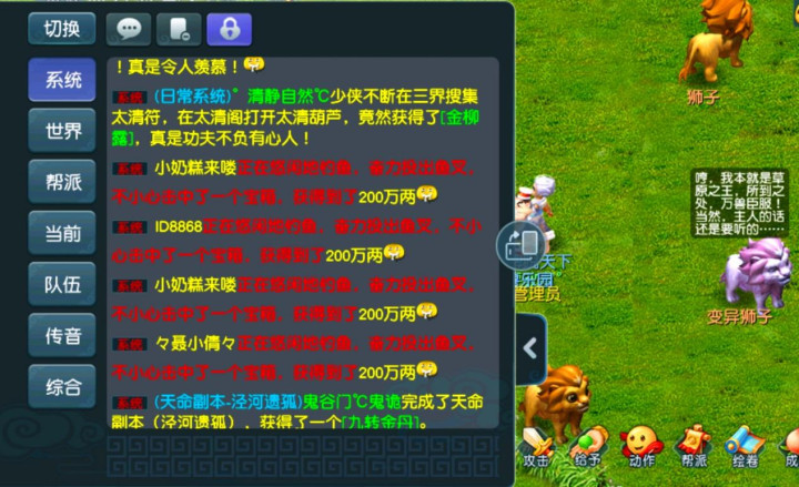 不知道在座的各位玩家是否知道钓鱼玩法?在梦幻西游中的钓鱼玩法的奖励还是比较不错的,上面这位玩家在钓鱼时就连续获得了多次200万梦幻币的奖励呢。而且几乎是在同一时间刷出来的,所以有玩家就想知道这是怎么回事,总不能钓鱼系统出Bug了吧,钓鱼的时候是不是使用鱼叉就能够插出200万梦幻币,如果是这样的话,多开钓鱼分分钟就能够到账几千万。