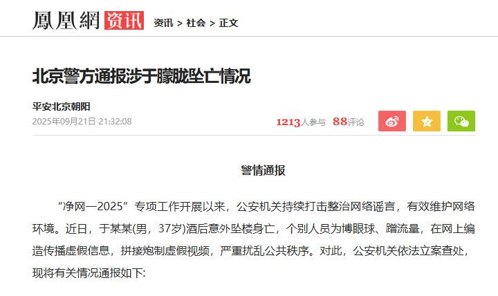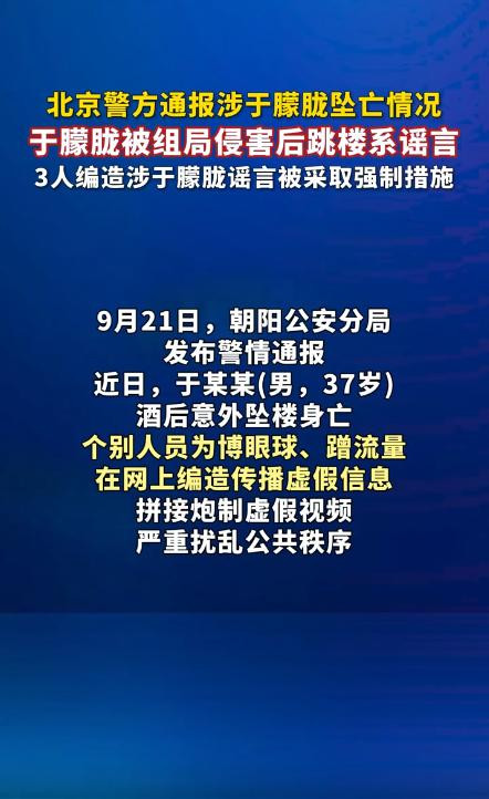 直到9月21日,警方在网络上通报了于朦胧去世是酒后意外坠楼身亡,排除了刑事案件嫌疑。
