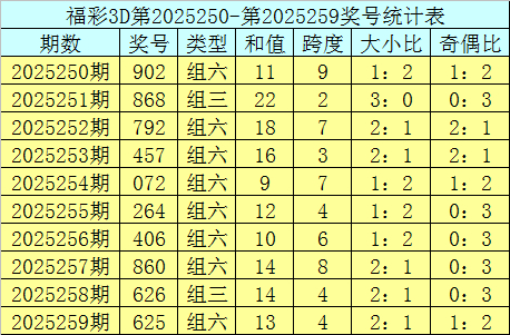 上期回顾:福利彩票3D第2025259期奖号为625。