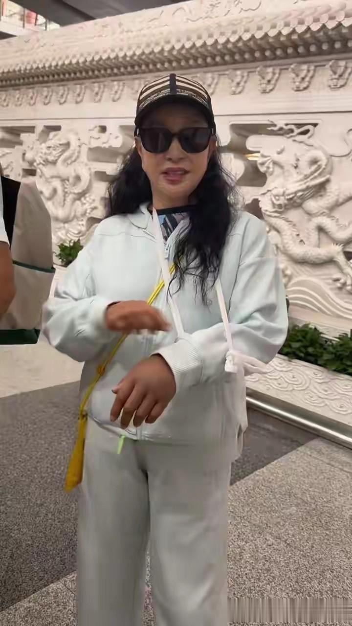 这一幕被现场工作人员记录并上传至网络,迅速引发网友热议。有人赞叹她“以喜剧消解危机”的高情商,也有人感慨其“淬炼半生的豁达与韧性”。在重庆30℃高温中,她单手持小风扇坚持完成当日录制,甚至在机场被记者询问伤情时,仍笑着回应:“没事,就是从台阶上摔了一下,胳膊稍微挫伤了,没大事!”这种乐观态度,让无数网友为之动容。